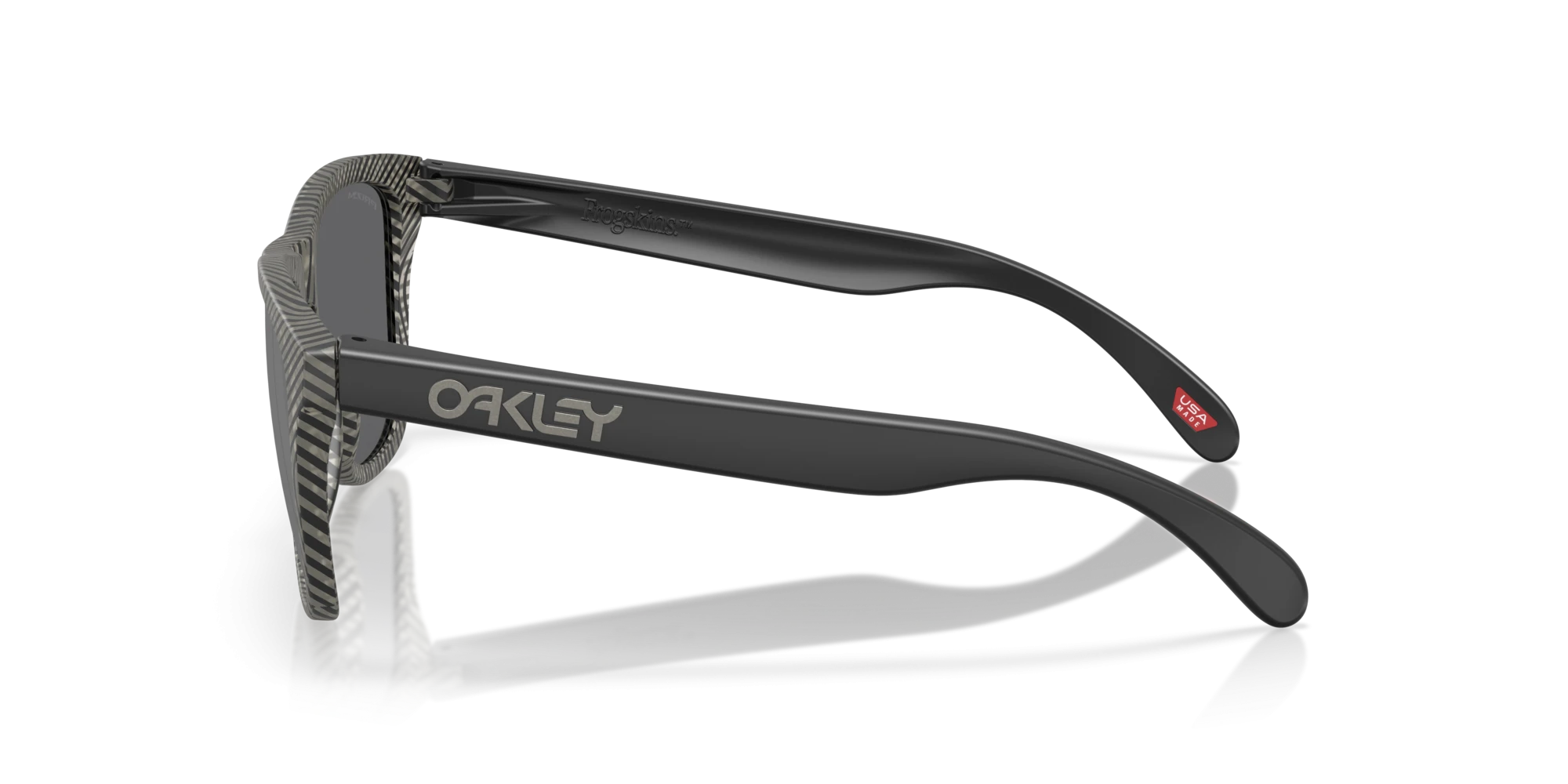 Điểm nhấn làm nên sự khác biệt hoàn toàn của OAKLEY Frogskins 0OO9013 9013M0 chính là màu gọng Matt grey ink fingerprint. Đây không phải là một màu đơn sắc, mà là một tác phẩm nghệ thuật đầy cá tính.