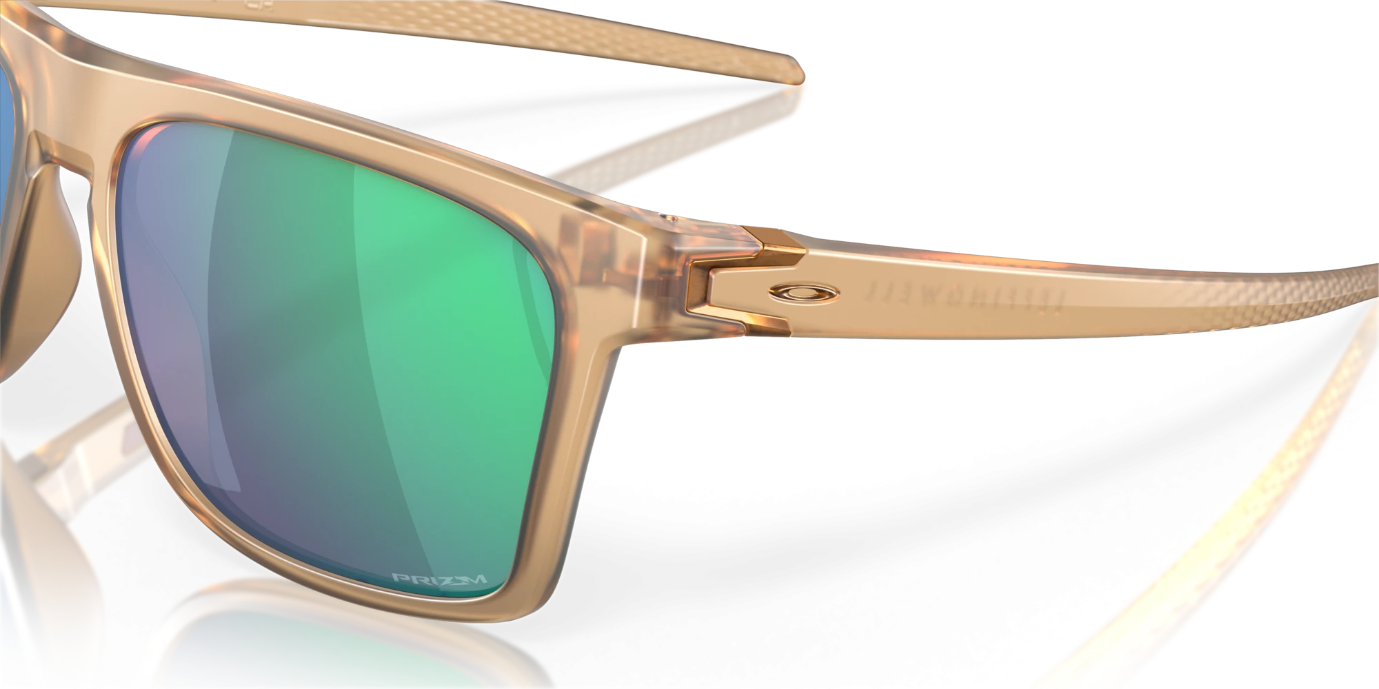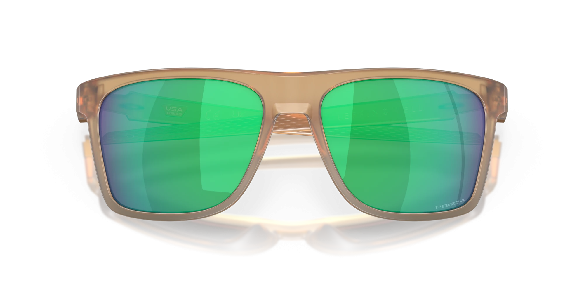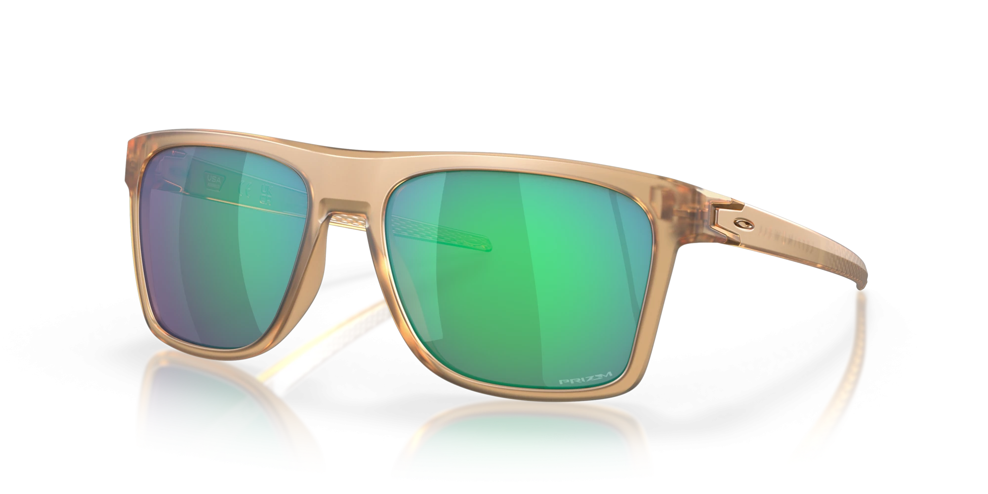 Điểm nhấn hiện đại và đầy năng lượng chính là tròng kính Prizm jade. Lớp tráng gương màu xanh ngọc bích rực rỡ không chỉ tạo hiệu ứng thị giác mạnh mẽ mà còn giúp làm dịu mắt dưới trời nắng. Sự tương phản giữa tông màu ấm của gọng và tông màu lạnh của tròng kính tạo nên một tổng thể hài hòa và đầy cuốn hút.