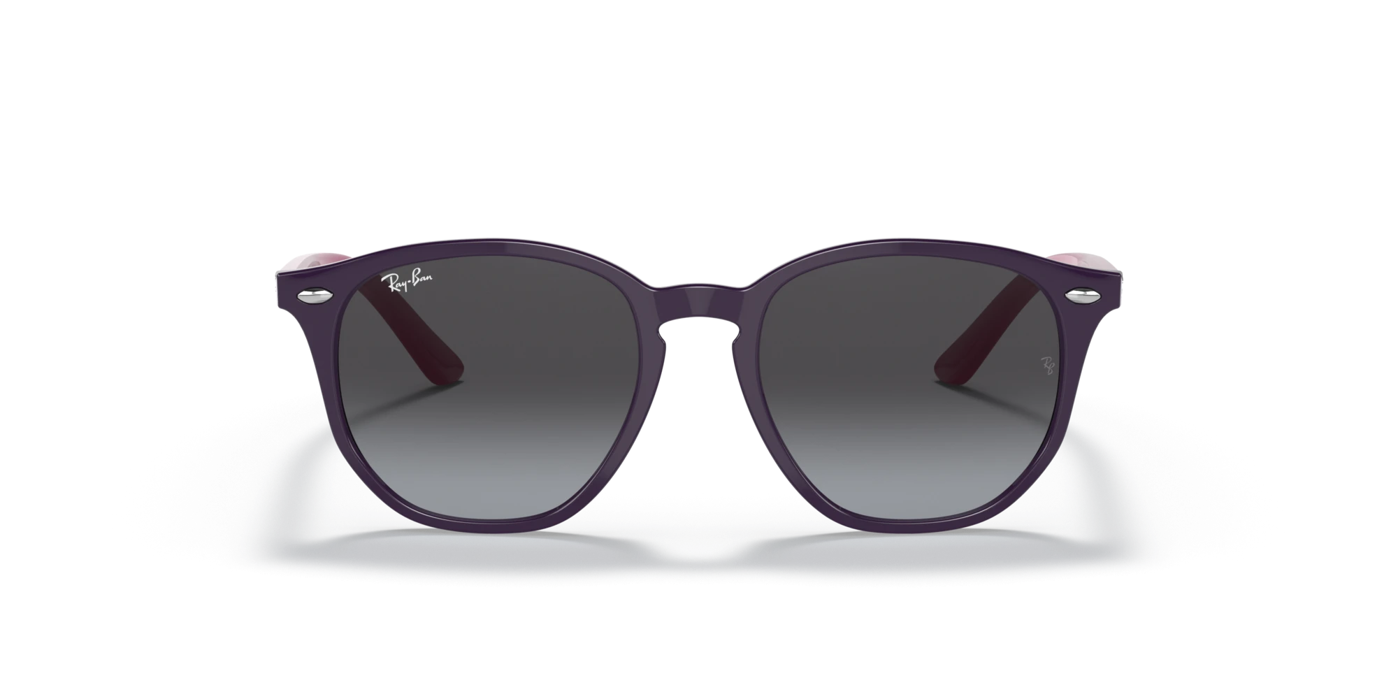 Chi tiết tinh xảo: Logo kim loại Ray-Ban trên càng kính và đinh tán ở mặt trước khẳng định chất lượng và đẳng cấp của sản phẩm.
