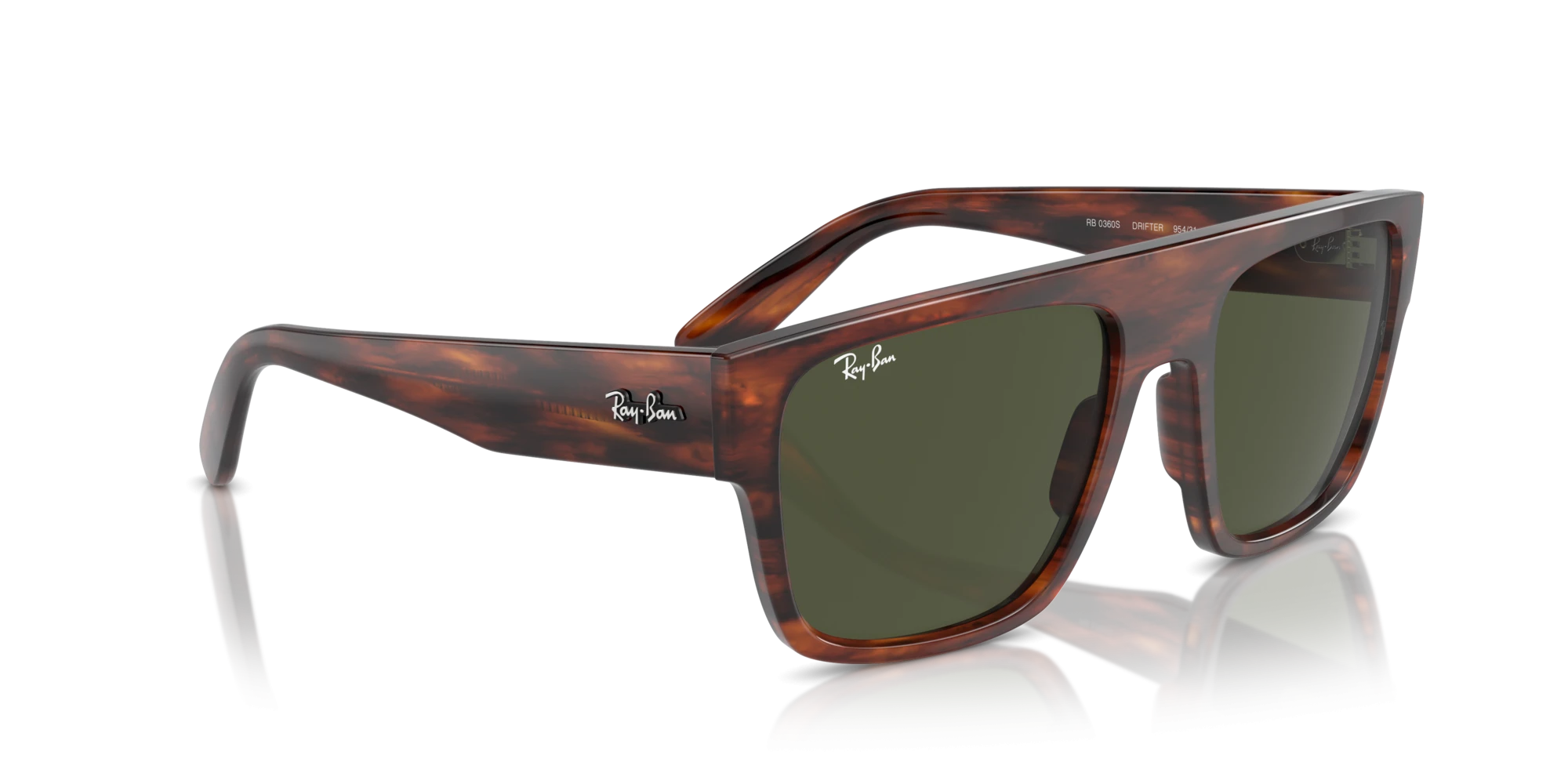 Thể hiện phong cách táo bạo của bạn với kính mát Ray-Ban Drifter 0RB0360S 954/31. Một thiết kế đầy cá tính, kết hợp họa tiết đồi mồi bất hủ và tròng kính xanh kinh điển, dành cho những ai dám khác biệt.