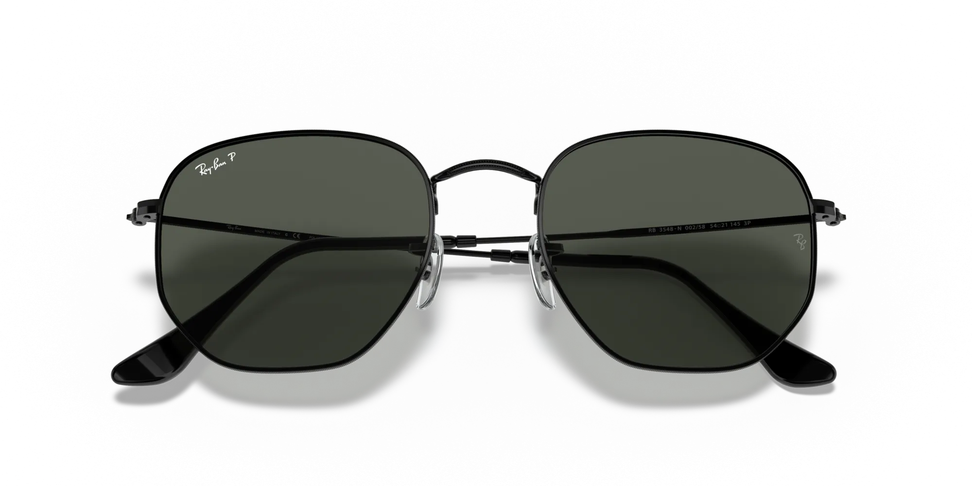 Sức hút của phiên bản Ray-Ban Hexagonal 0RB3548N 002/58 đến từ sự kết hợp giữa phom dáng độc đáo và màu sắc cơ bản nhưng đầy quyền lực.