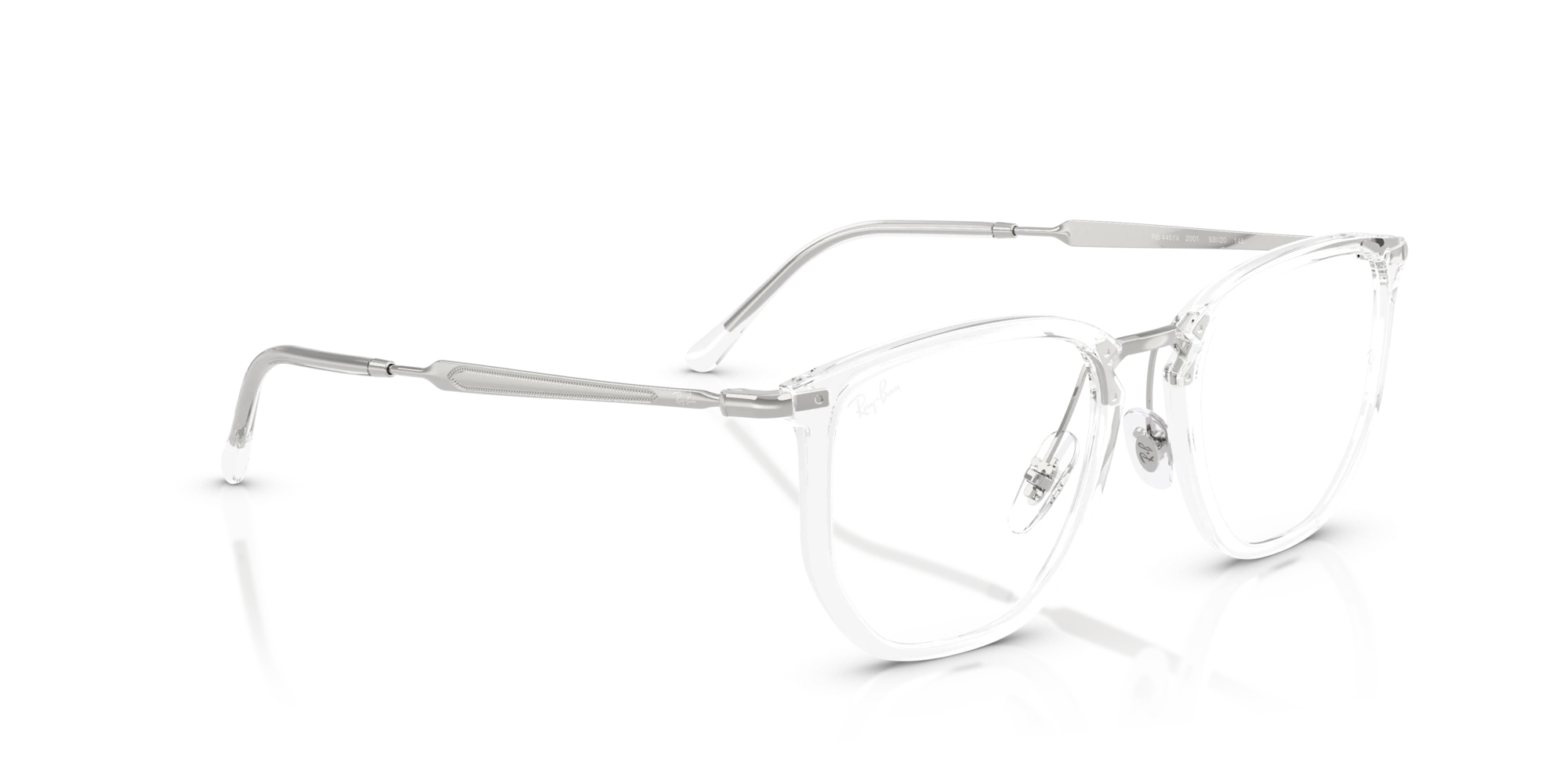 Trong bộ sưu tập Ray-Ban Optical 0RX4451V 2001 đầy cá tính, phiên bản 2001 (Transparent/Silver) nổi bật lên như một lựa chọn táo bạo nhất, dành cho những ai yêu thích sự tối giản tuyệt đối và muốn phô diễn trọn vẹn vẻ đẹp kiến trúc của gọng kính. Đây là một thiết kế mang đậm hơi thở tương lai, nơi hình dáng và cấu trúc được đặt lên hàng đầu.