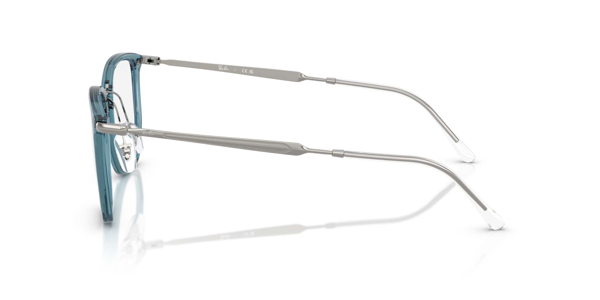 - Mặt trước: Màu Xanh Trong Suốt (Transparent Blue – Mã 8426) là một xu hướng đang lên ngôi. Nó mang lại cảm giác nhẹ nhàng, trẻ trung và “thoáng đãng” cho khuôn mặt, không gây cảm giác nặng nề như các màu tối truyền thống. Lớp hoàn thiện bóng (Polished) càng làm tăng thêm vẻ tươi mới cho gọng kính.