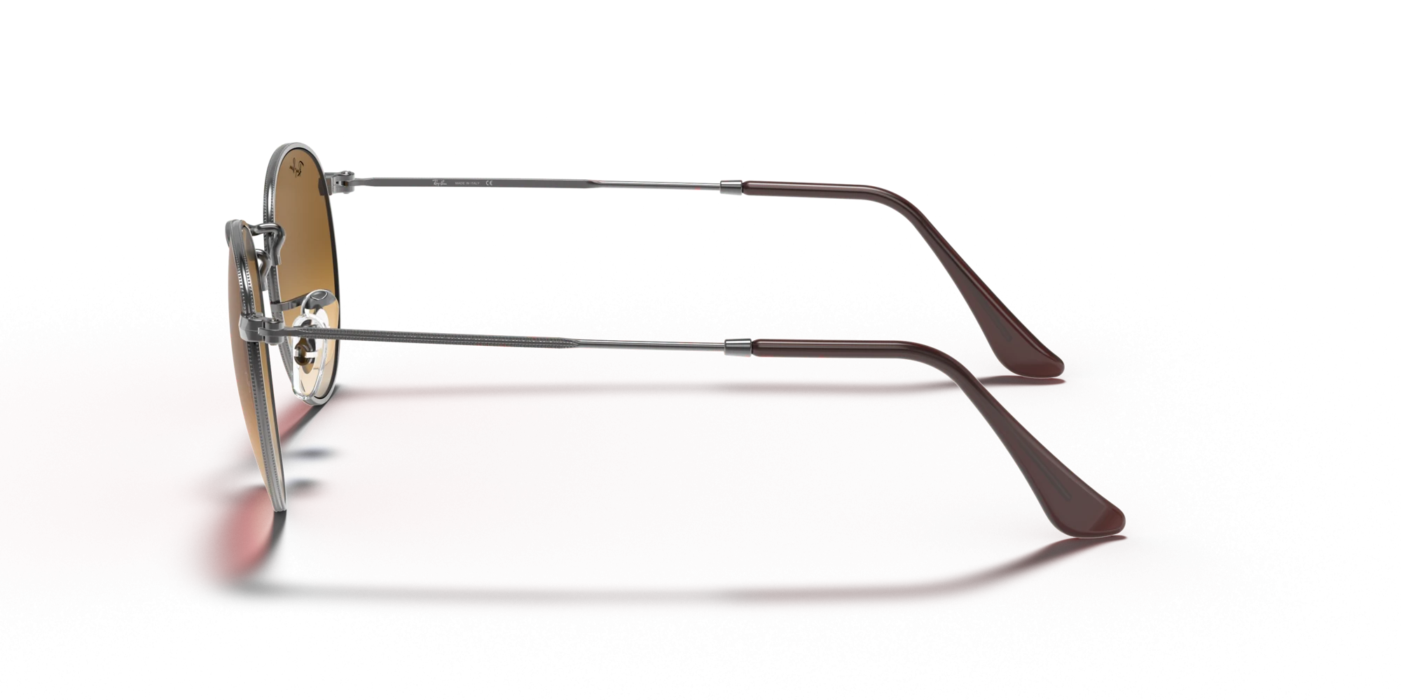 Sự kết hợp giữa gọng kính kim loại màu xám gunmetal và tròng kính màu nâu chuyển sắc (Light Brown Gradient) kinh điển tạo nên một tổng thể vừa hài hòa vừa phá cách, mang lại chiều sâu và sự sang trọng cho thiết kế.